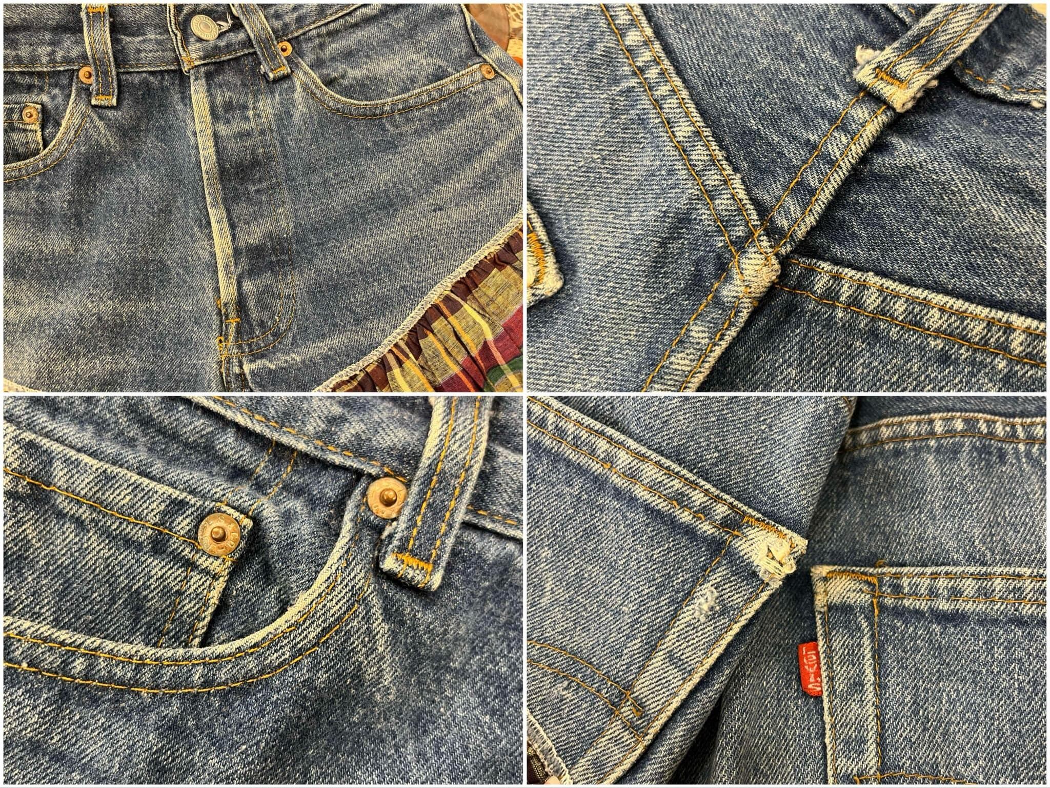 Levi's blue×pail yellow plaid denim remake skirt [l-2569]