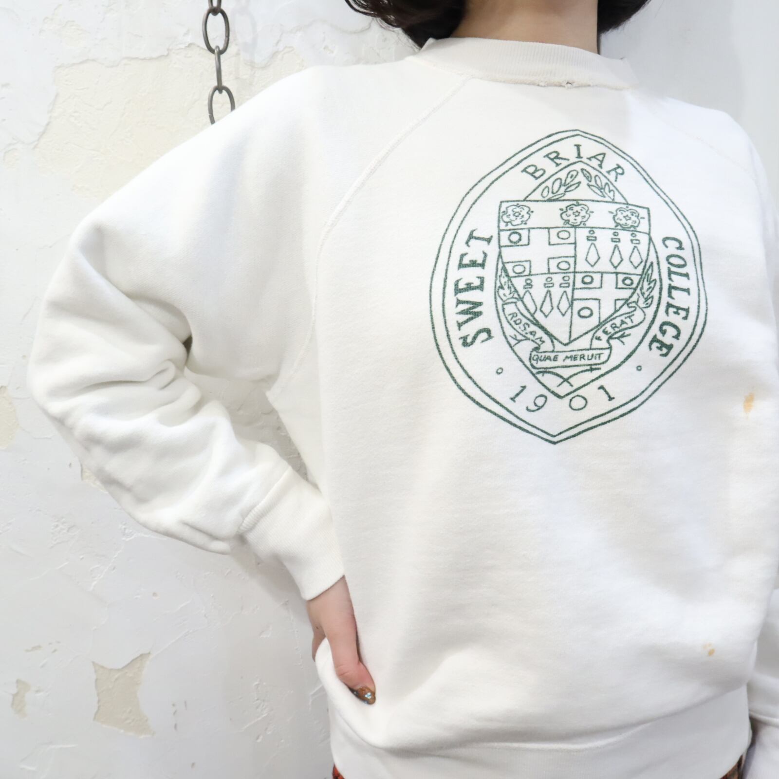60s white×green print sweat [k-2571]